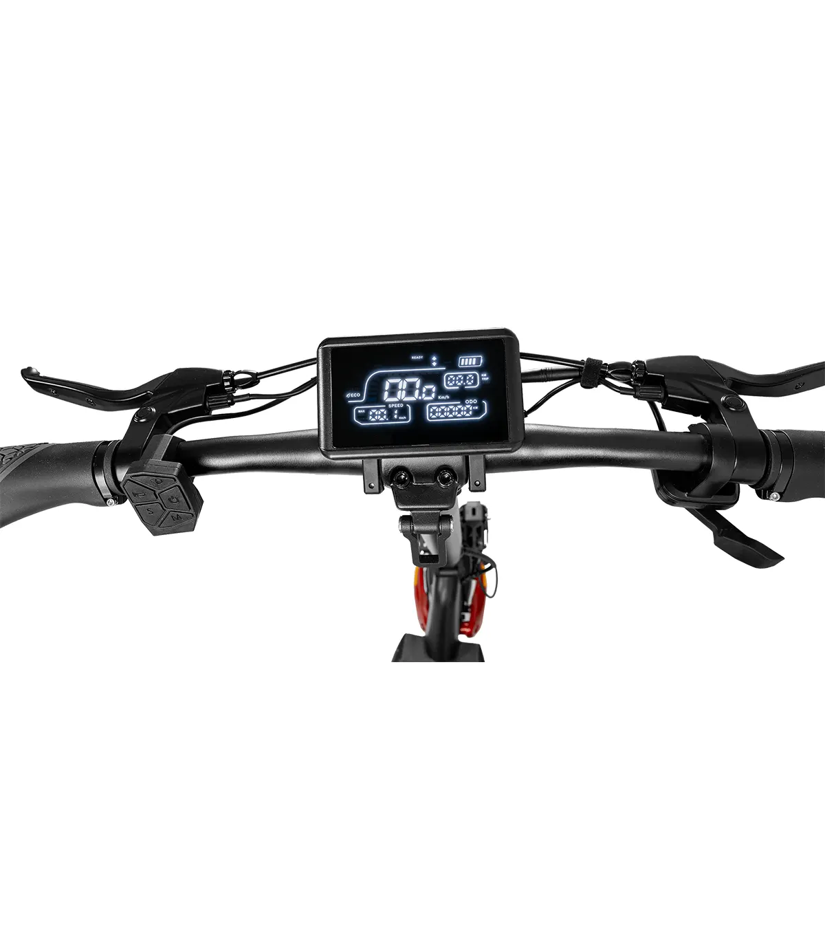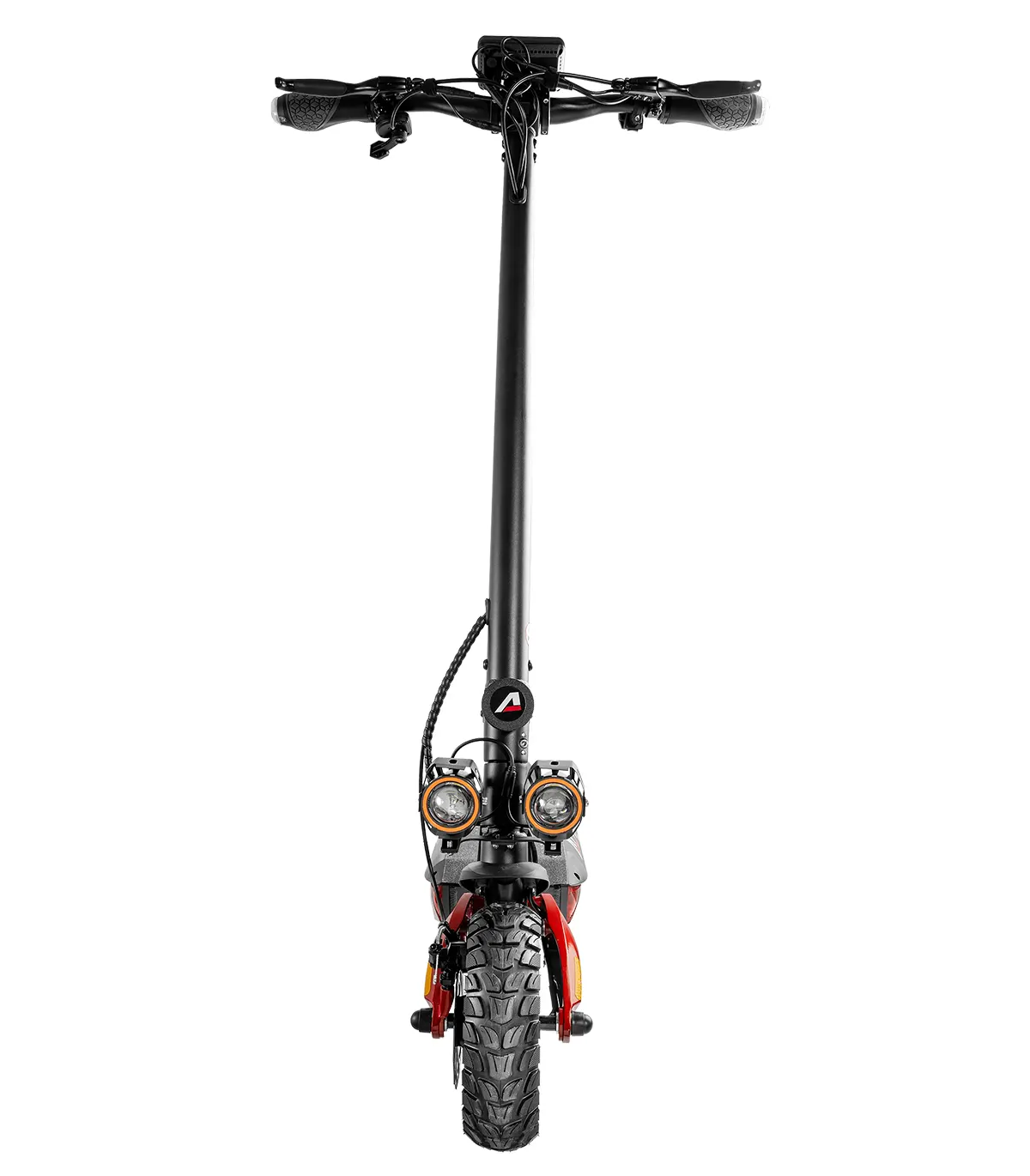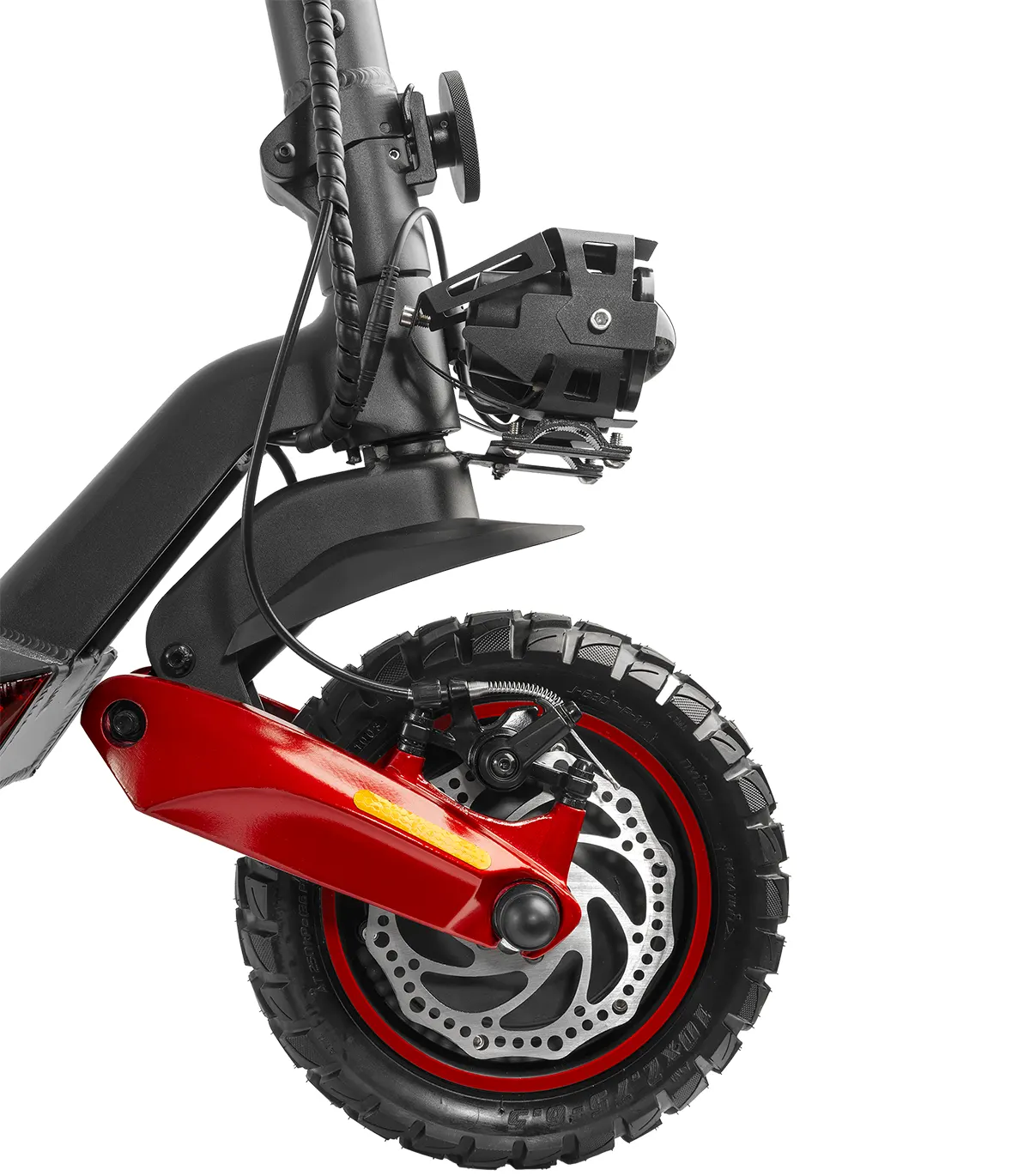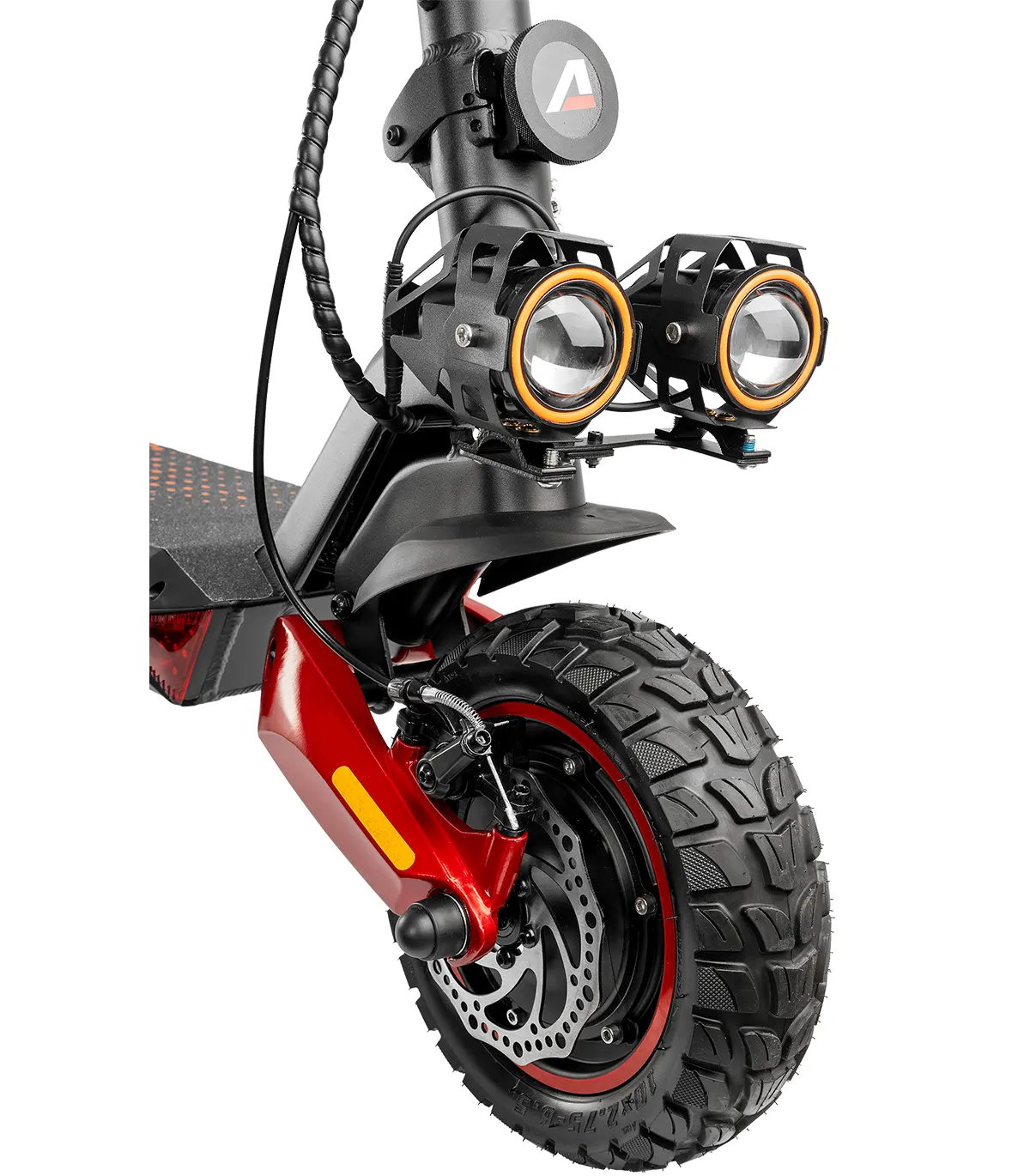 Romobil ima 10” kotače, dok prednji i stražnji amortizeri osiguravaju glatku vožnju čak i po neravnim terenima. Dizajniran je za maksimalnu težinu vozača do 120 kg, čime pruža stabilnost i izdržljivost.
